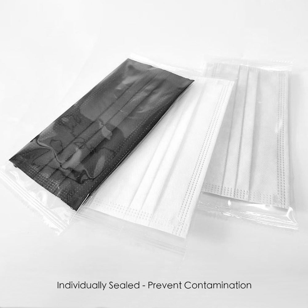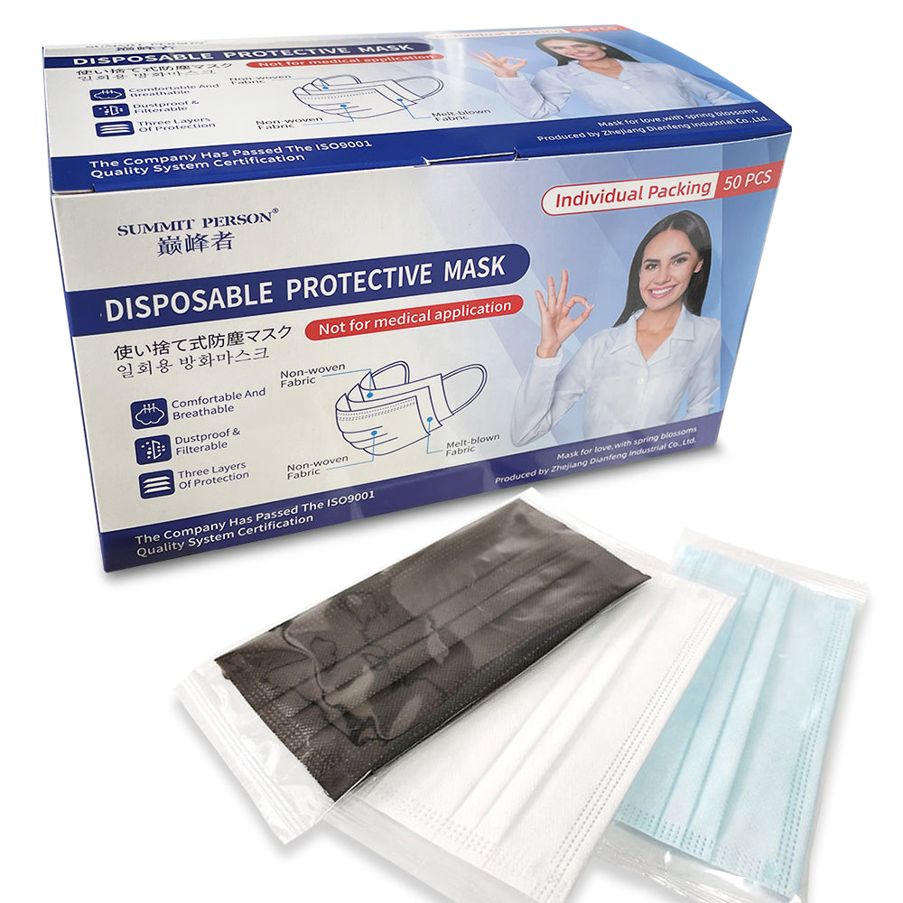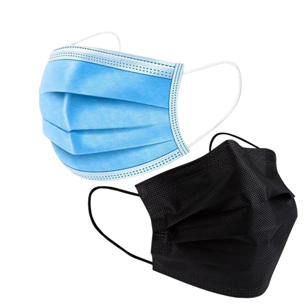 50 Pack 3 Layer Protective Disposable Single Packing Face Masks – Black/Blue