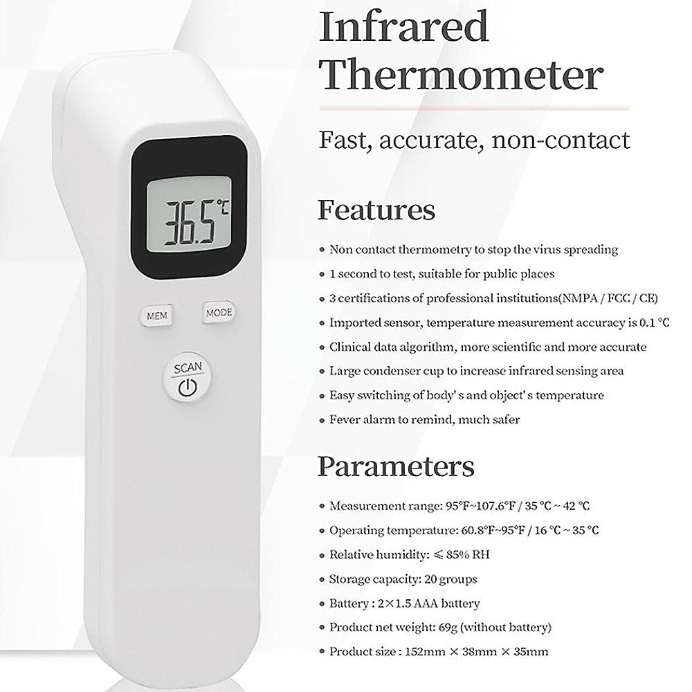 - Dual mode measurement: Body temperature and Object temperature