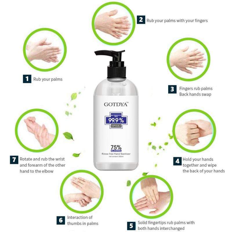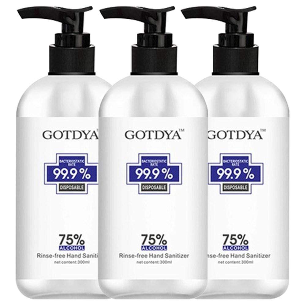 GOTDYA 300ml 75% Alcohol Antibacterial Hand Sanitiser Gel Kills 99.9% Germs Rinse-Free Pump Bottle Sets