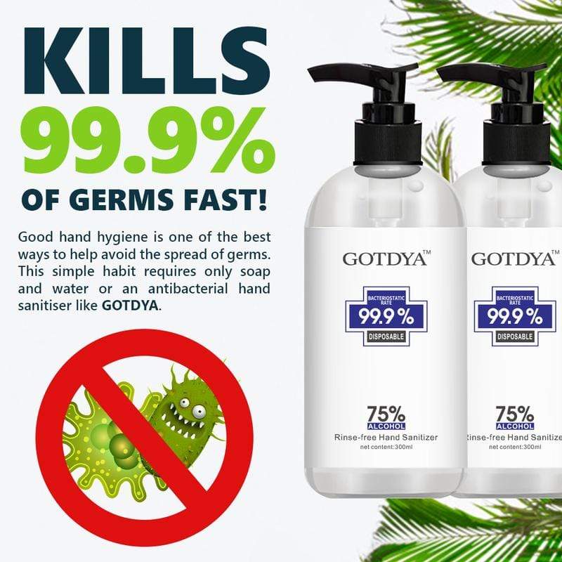 Gotdya hand sanitizer gel is specially formulated to kill 99.99% of bacteria while leaving your hands feeling fresh. Containing 75% alcohol, Gotdya is your first line of defence against sickness and protects your family from harmful germs.